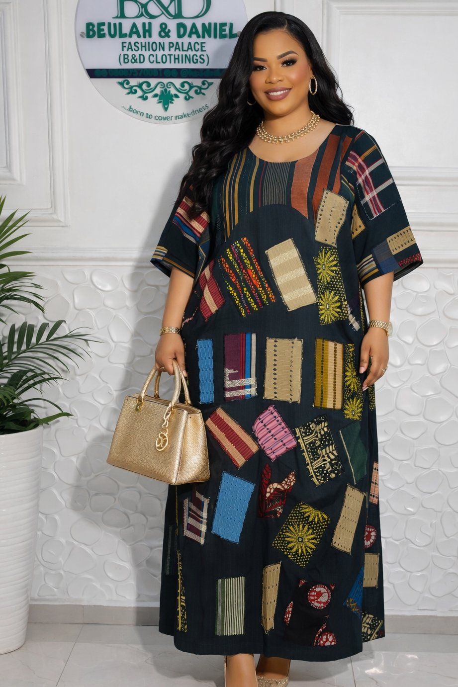 Step into effortless elegance with this beautifully crafted Ankara maxi dress, designed for the modern woman who values both comfort and uniqueness. Featuring a rich dark base adorned with vibrant patchwork-inspired prints, this piece is a true celebration of African artistry and contemporary fashion. The relaxed, free-flowing silhouette offers a flattering fit for all body types, while the short sleeves and round neckline provide a perfect balance of modesty and ease. Fully lined for added comfort and durability, this dress ensures a smooth, luxurious feel against the skin. Perfect for casual outings, social gatherings, or special occasions, this versatile maxi dress pairs effortlessly with heels or flats for a chic, polished look. Key Features: Premium Ankara fabric with unique patchwork design Fully lined for comfort and quality finish Relaxed, free-fit silhouette Short sleeves with round neckline Suitable for both casual and occasion wear Make a bold yet elegant statement with this standout piece from B&D Clothings—where tradition meets modern sophistication