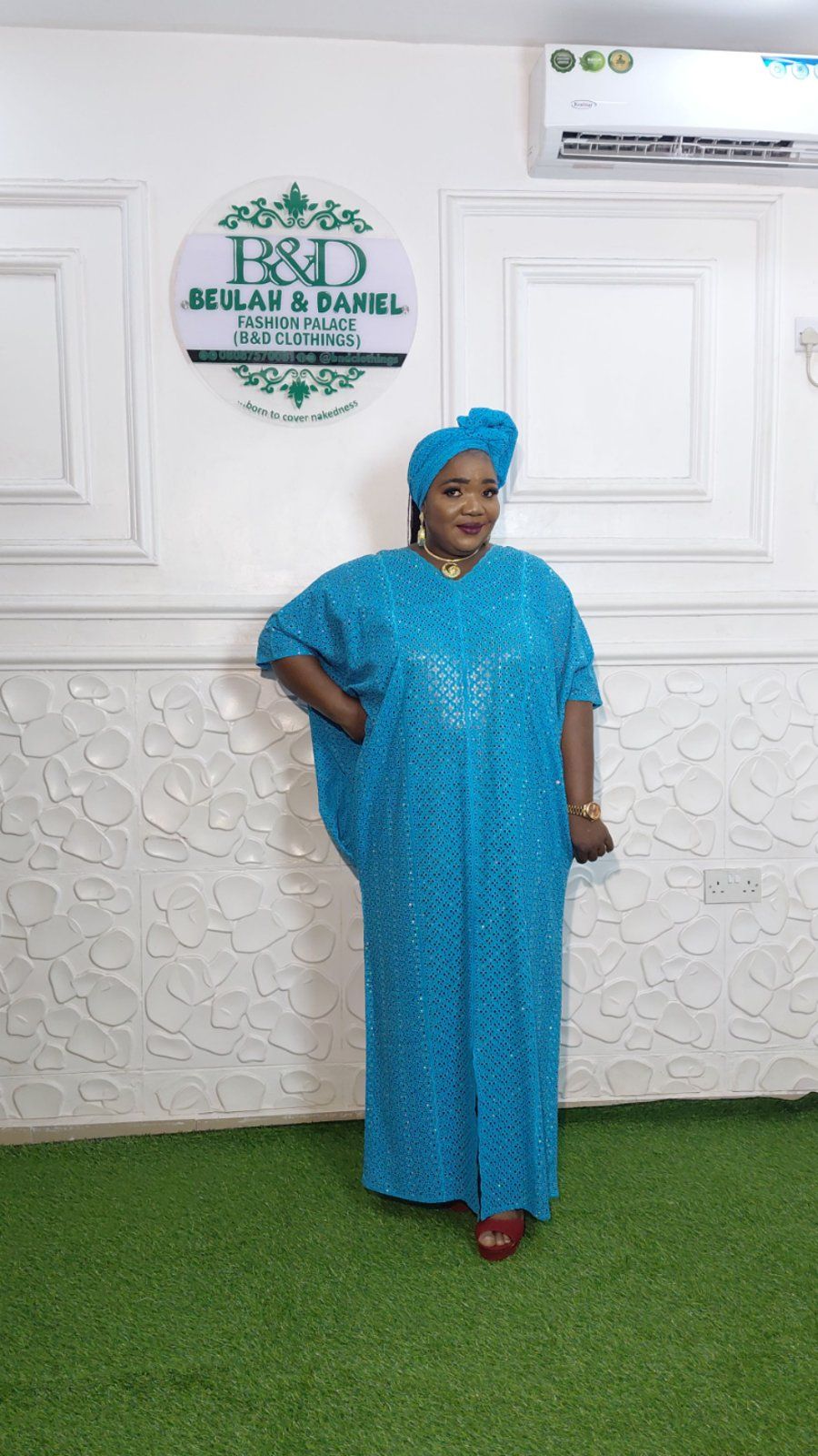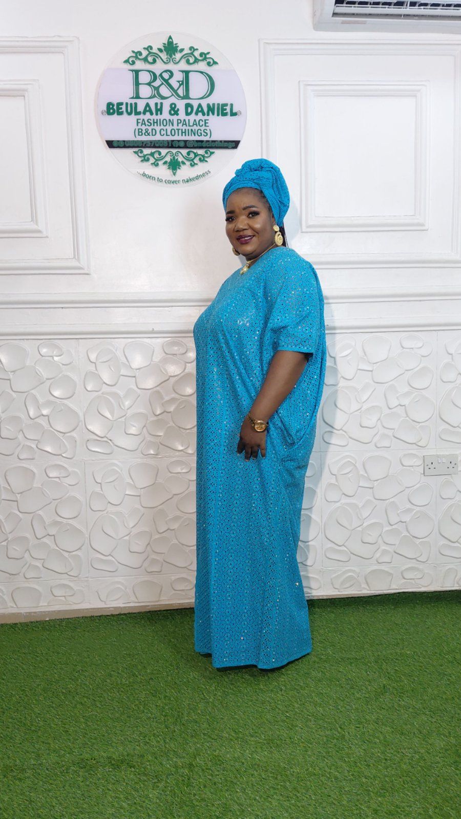 "Where Breathable Comfort Meets High-Octane Glamour Step into the room and own the spotlight. Our Fully Embellished Rhinestone Kaftan is a masterclass in African elegance, designed for the woman who demands both luxury and comfort. Crafted from premium Cotton Dry Lace, this dress offers a crisp, structured silhouette while remaining incredibly breathable—perfect for long celebrations, weddings, or high-profile events. Product Highlights Exquisite Embellishment: Every inch is meticulously adorned with high-grade rhinestones that catch the light from every angle, ensuring a 360-degree shimmer. Premium Fabric: Made with authentic Cotton Dry Lace, providing a soft touch against the skin and a regal drape. Versatile Silhouette: The flowing, oversized fit (Bubu/Kaftan style) offers effortless grace for all body types. Matching Headpiece: Complete the look with the included coordinated headwrap for a seamless, head-to-toe ensemble."