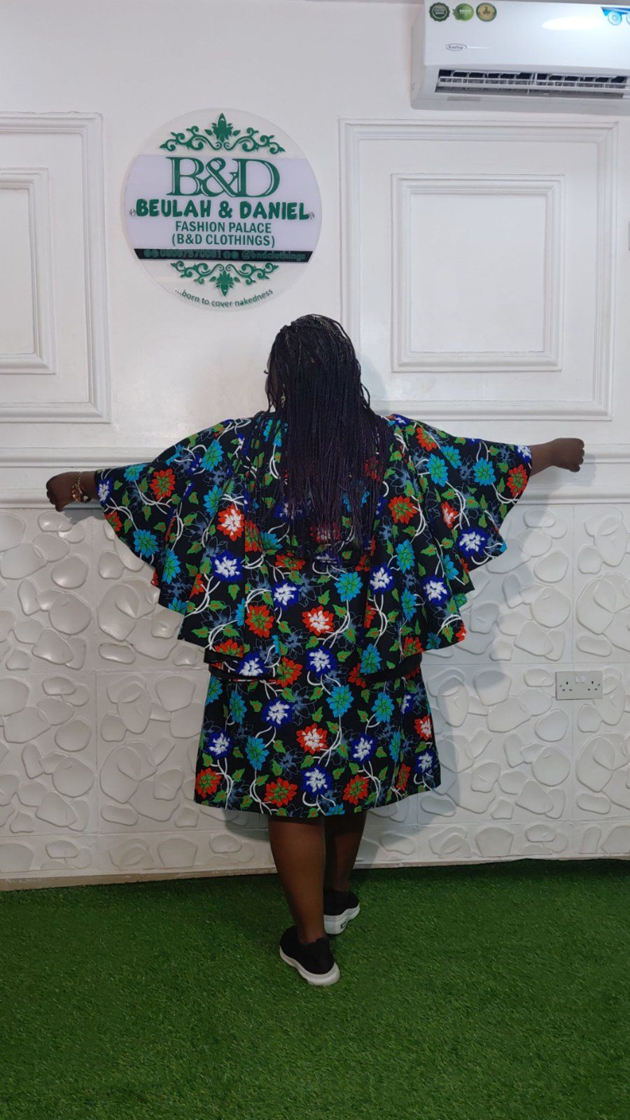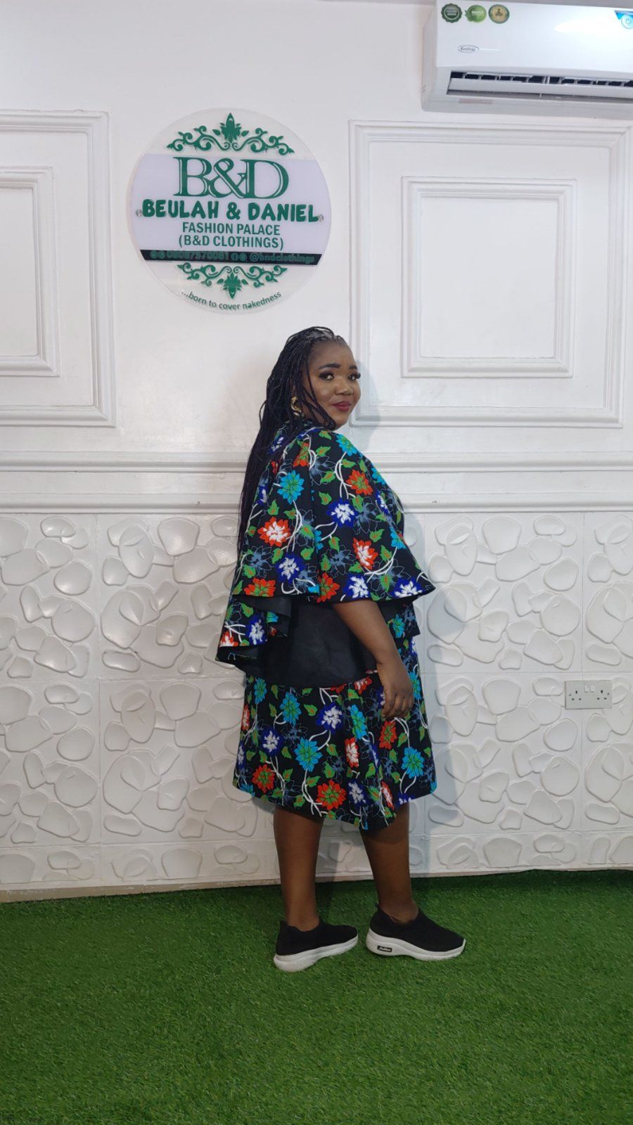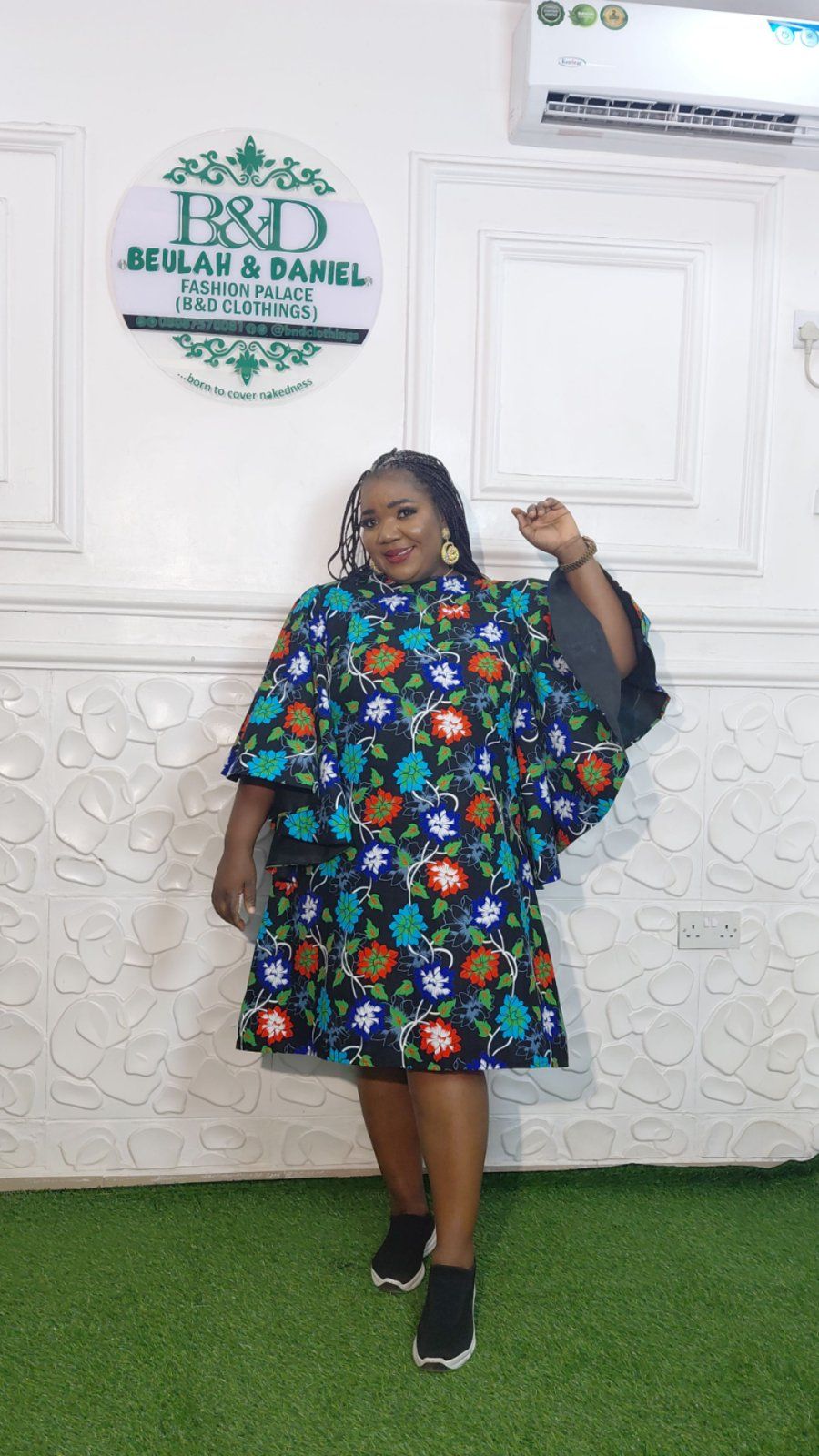 "Effortless Elegance Meets Everyday Comfort Turn heads and stay comfortable in our latest signature piece. Crafted from premium, high-contrast Ankara wax print, this dress features a stunning interplay of deep blues, vibrant oranges, and turquoise florals. It’s designed for the woman who wants to make a statement without saying a word. Why You’ll Love It: Dramatic Butterfly Sleeves: Double-layered sleeves add volume and a touch of high-fashion drama to your silhouette. Flattering A-Line Cut: Designed to flow beautifully on every body type, offering a relaxed yet polished fit. Dual Side Pockets: Because every queen needs a place for her phone and lipstick! Deep, functional, and hidden for a seamless look. Versatile Styling: Pair it with sneakers for a chic daytime look (as pictured) or dress it up with gold strappy heels for a wedding or evening event."